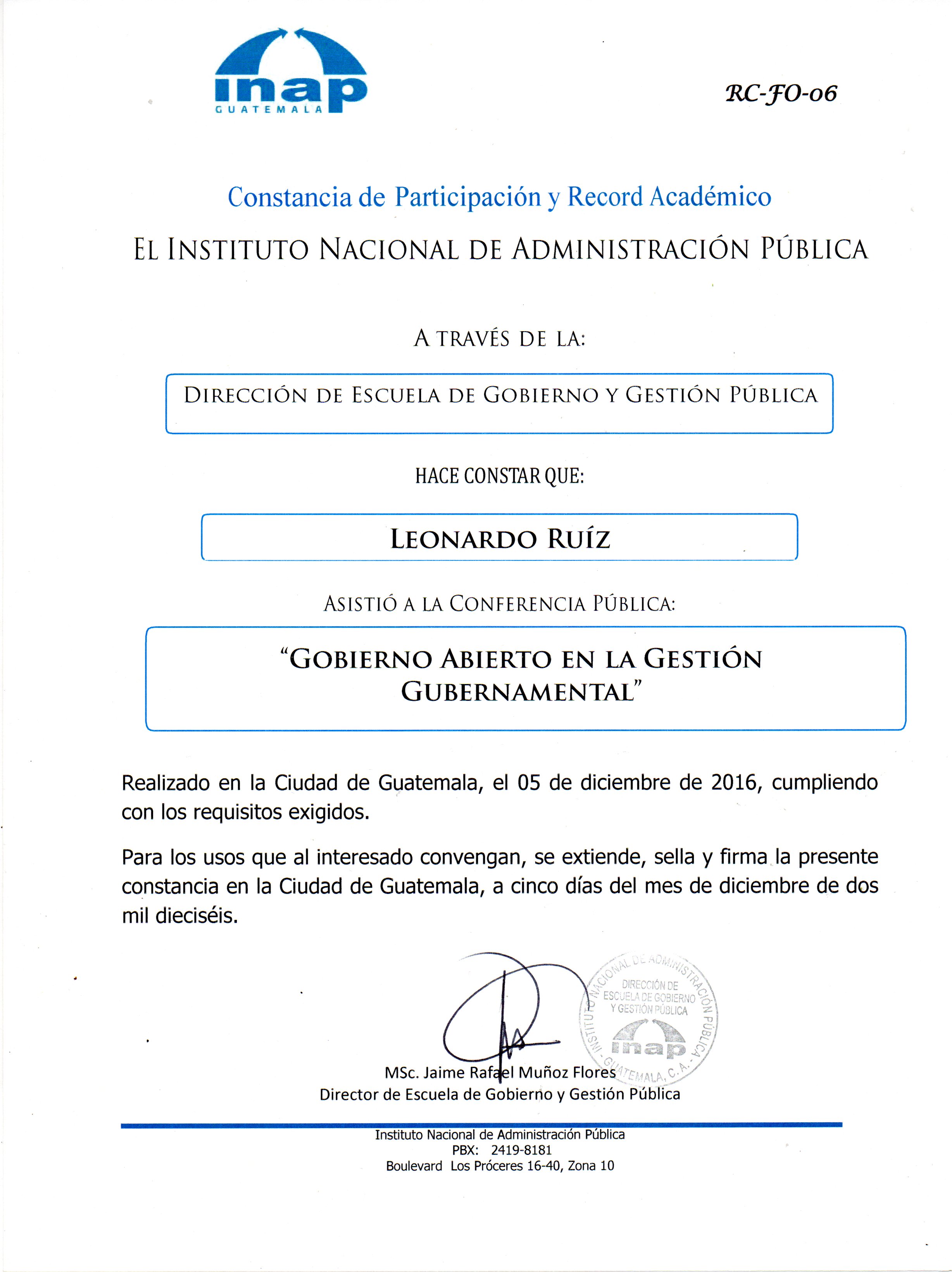 Conferencia: GOBIERNO ABIERTO EN LA GESTÓN GUBERNAMENTAL INAP-INSTITUTO NACIONAL DE ADMINISTRACIÓN PÚBLICA |