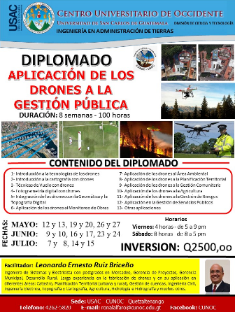 Este programa ofrece a los participantes, conocer y aprender sobre las tecnologías de drones integradas con la geomática aplicadas a la gestión pública para el análisis espacial y temporal del territorio.