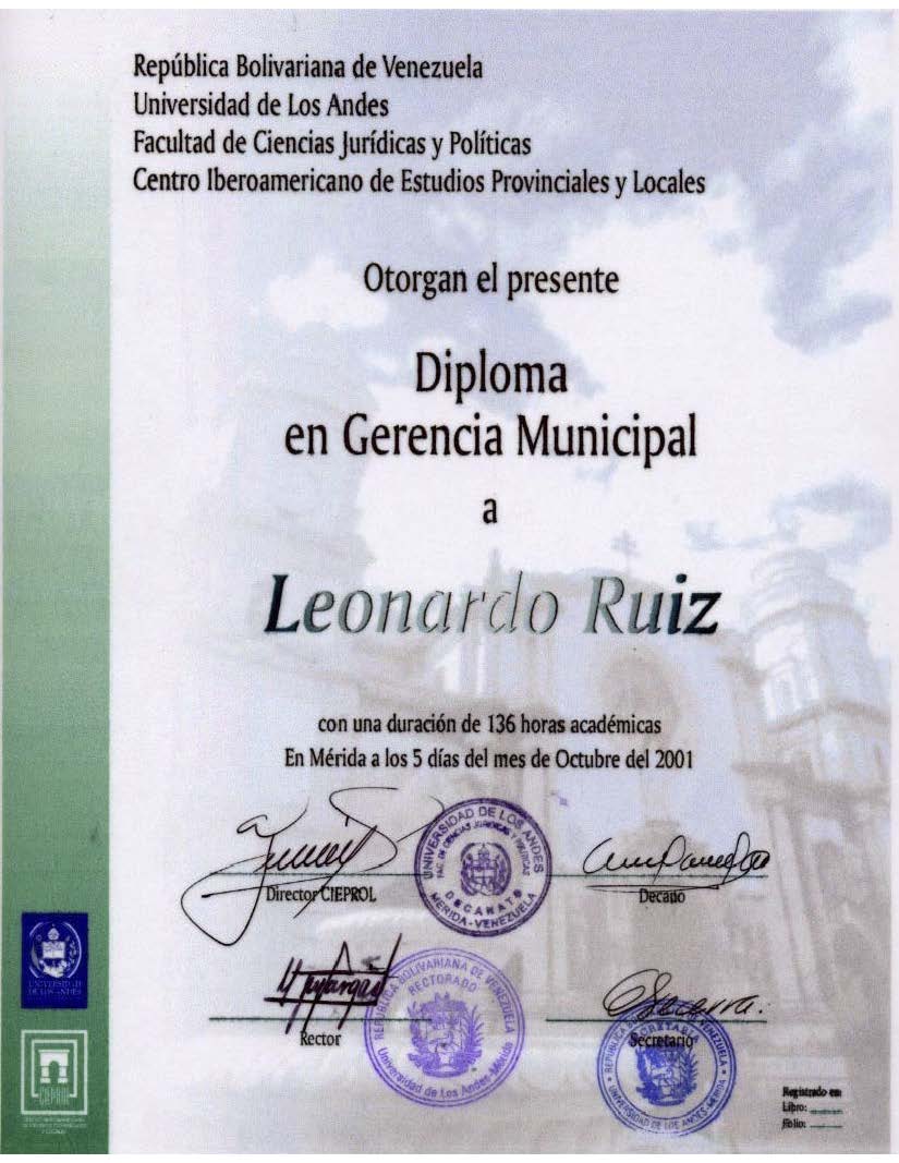 DIPLOMADO EN GERENCIA MUNICIPAL CIEPROL - Centro Iberoamericano de Estudios Provinciales y Locales Facultad de Ciencias Jurídicas y Políticas Universidad de los Andes - Mérida - Venezuela |