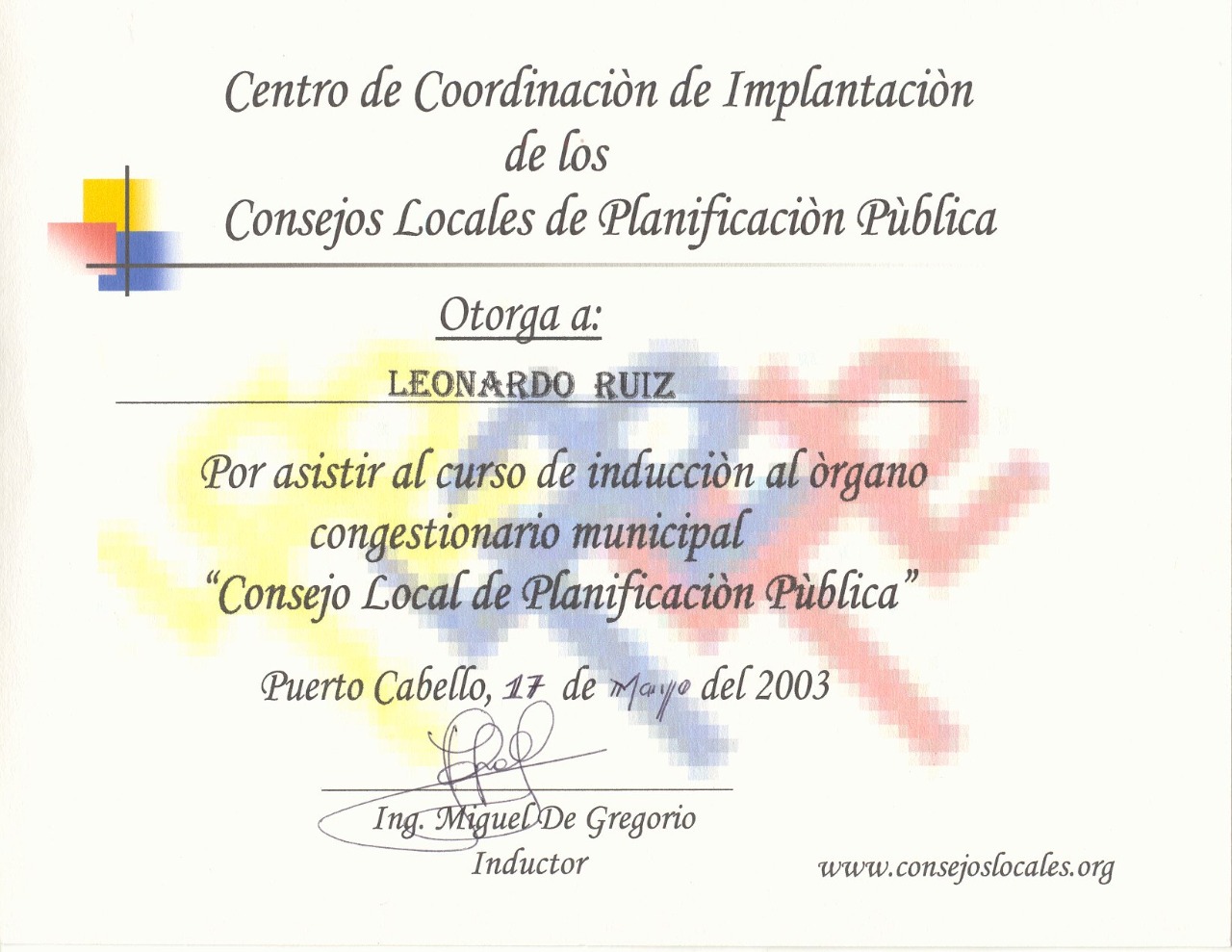 CURSO: Consejo Local de Planificación Pública Centro de Coordinación de Implantación de los Consejos Locales de Planificación Públical - Puerto Cabello, Estado Carabobo, Venezuela |