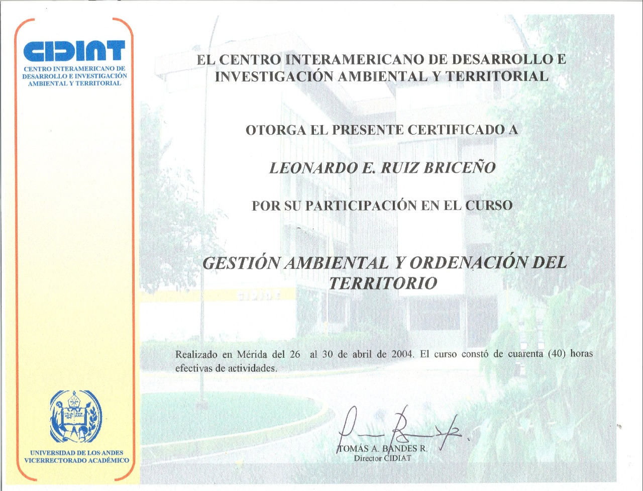CURSO: Gestión Ambiental y Ordenación del Territorio CIDIAT - Centro Interamericano de Desarrolllo e Investigación Ambiental Territorial - Mérida, Venezuela |