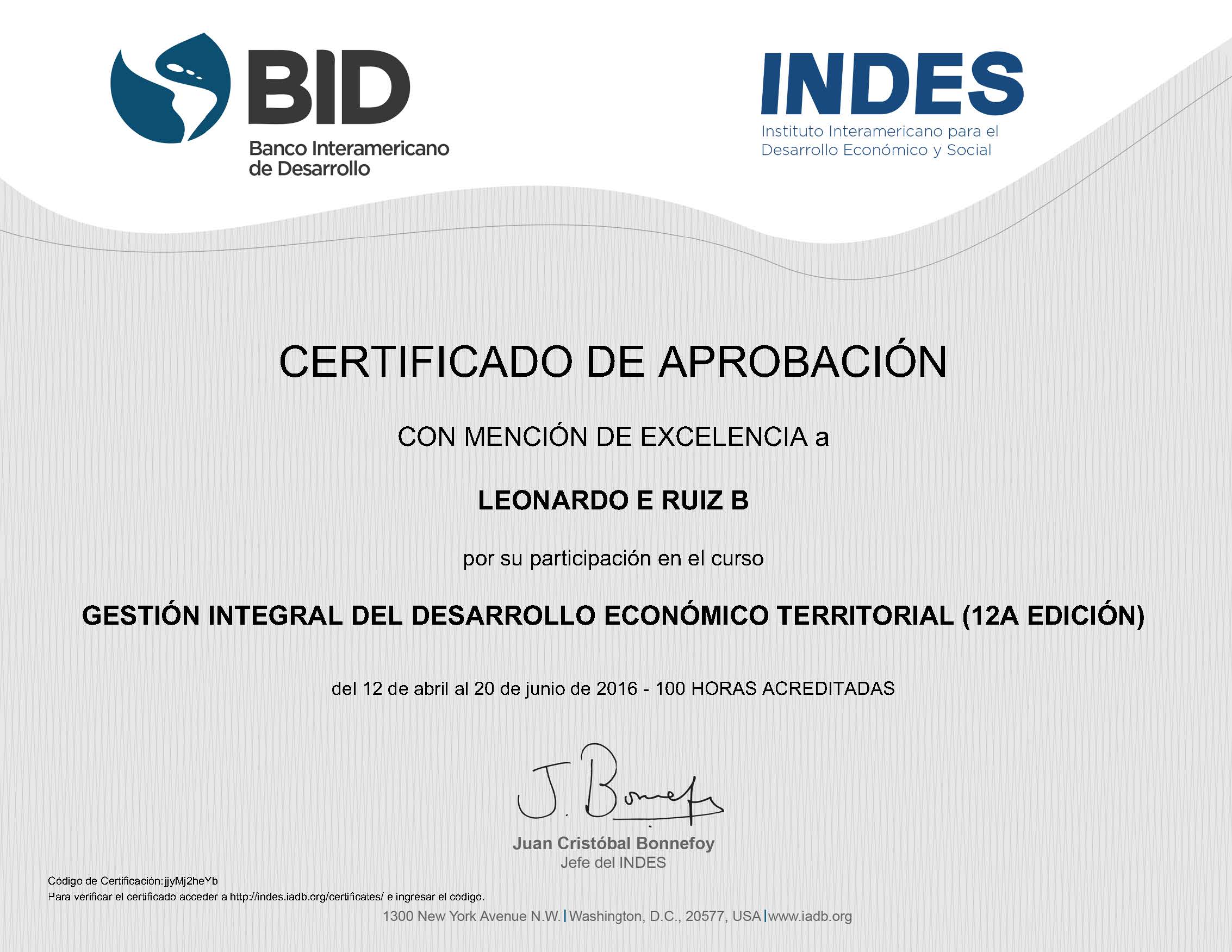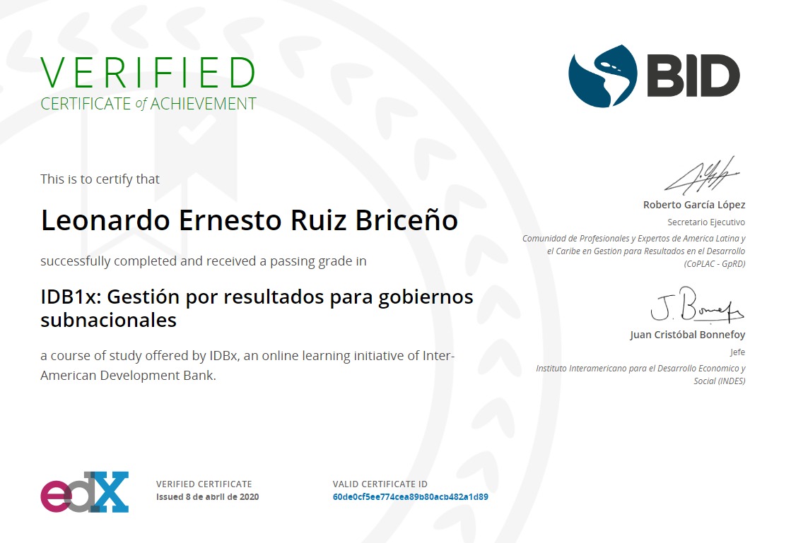 Curso edX: GESTIÓN INTEGRAL DEL DESARROLLO ECONÓMICO TERRITORIAL (12A EDICIÓN) BID-Banco Interamericano de Desarrollo INDES-Instituto Interamericano para el Desarrollo Económico y Social |
